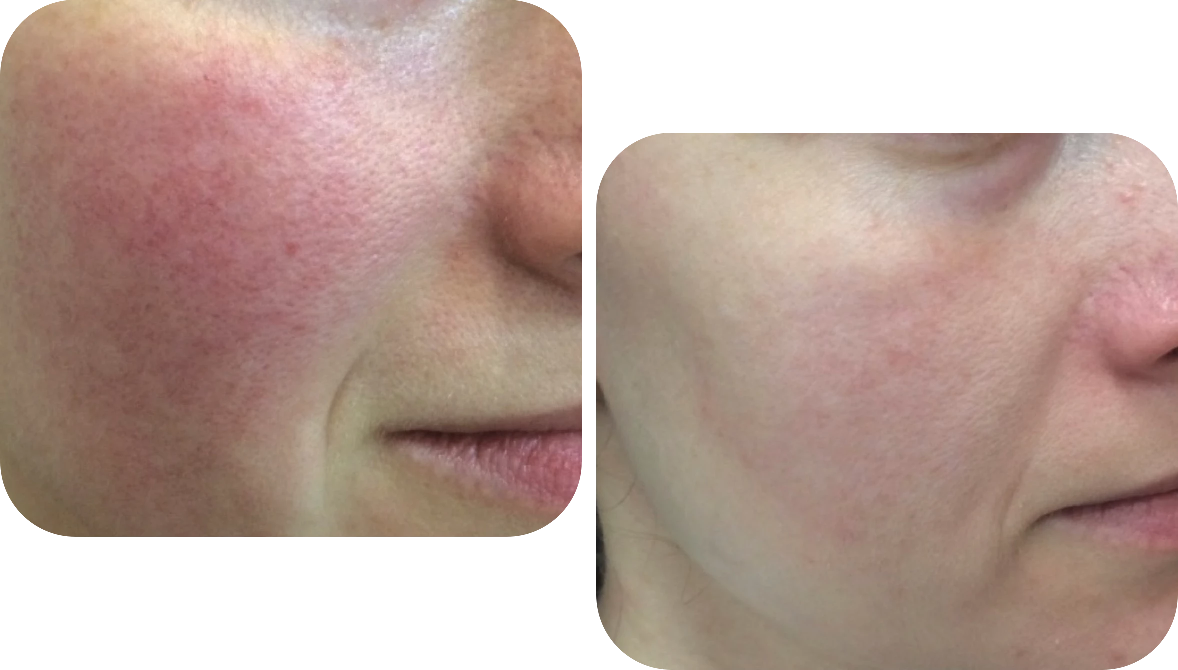Suaviza rojeces, principalmente la rosacea, venitas faciales y también marcas de acné.