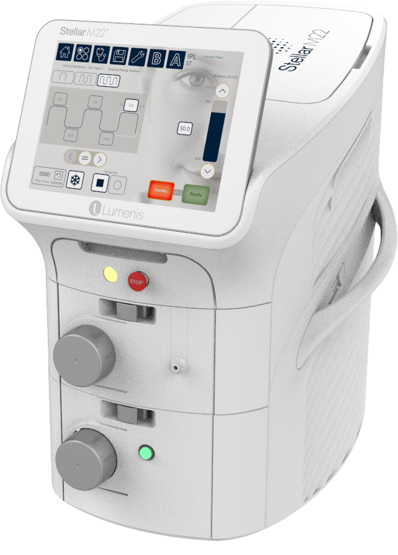 Elimina las huellas de los años y manchas del sol, y consigue un rejuvenecimiento global del rostro, cuello, escote y manos con la plataforma más moderna del mercado — Stellar M22 de Lumenis